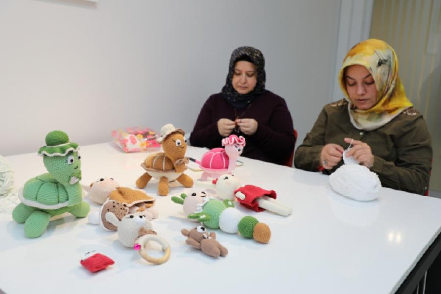 Geleneksel el sanatları ve hazır giyim branşlarının kadınlar tarafından en fazla ilgi gördüğü merkezde, iğne oyasından, deri tasarımı ve işlemeye, ahşap boyamadan sepet örücülüğüne 22 branşta eğitim veriliyor.