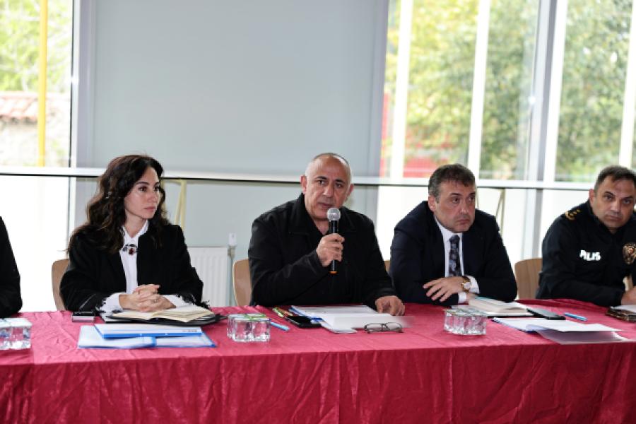 Toplantıda; afet risklerinin tespiti, önleyici çalışmaların yerel düzeyde uygulanabilirliği ve sürecin etkin şekilde takibi ele alındı.