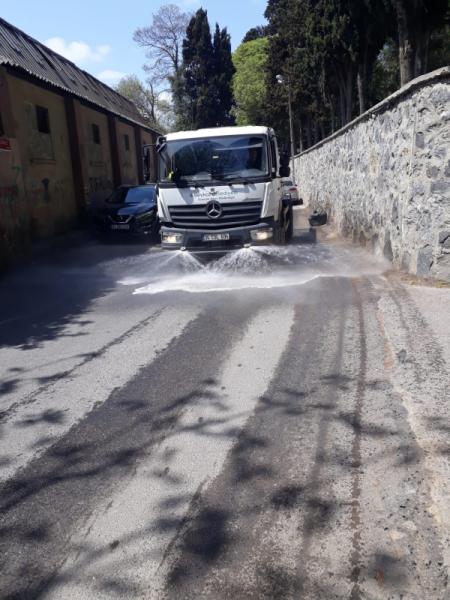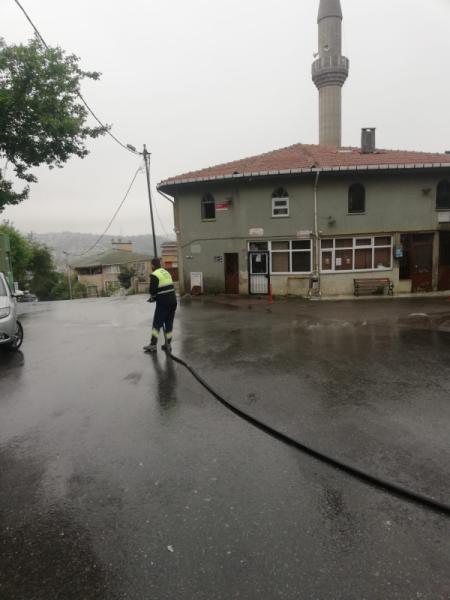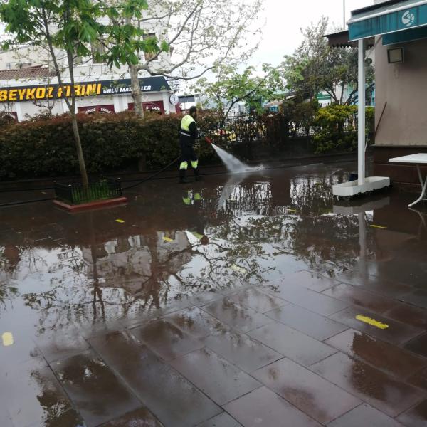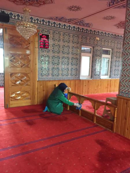 İlçedeki tüm camilere yönelik düzenli yürütülen iç ve dış temizlik hizmeti veren ekipler arefe günü dolayısıyla tüm camileri sırasıyla ziyaret ederek, bayrama özel olarak her caminin avlu ve girişlerini özenle yıkıyor.