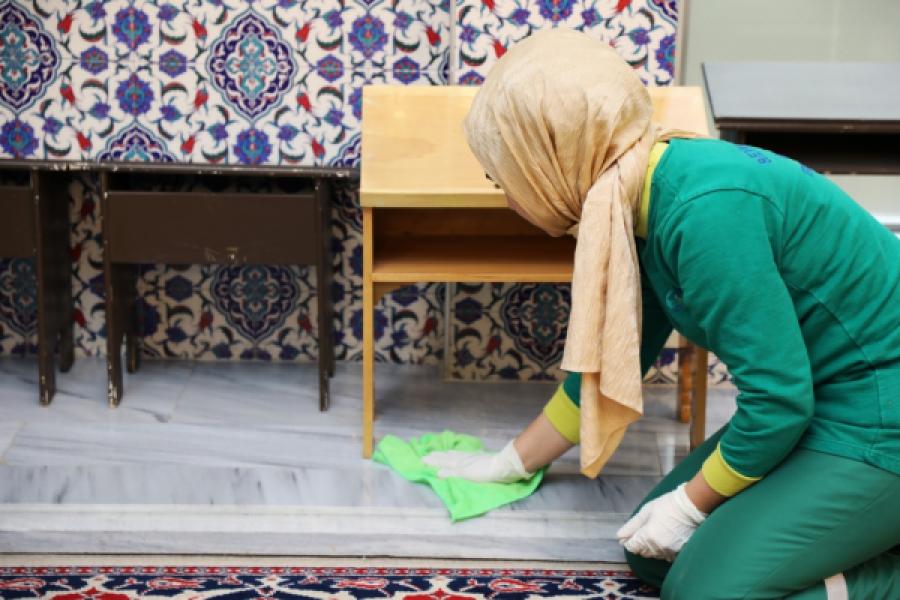 Camilerin yanı sıra Kur’an Kursları da mobil ekipler tarafından aynı özen ve titizlikle temizleniyor.