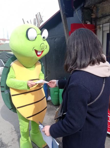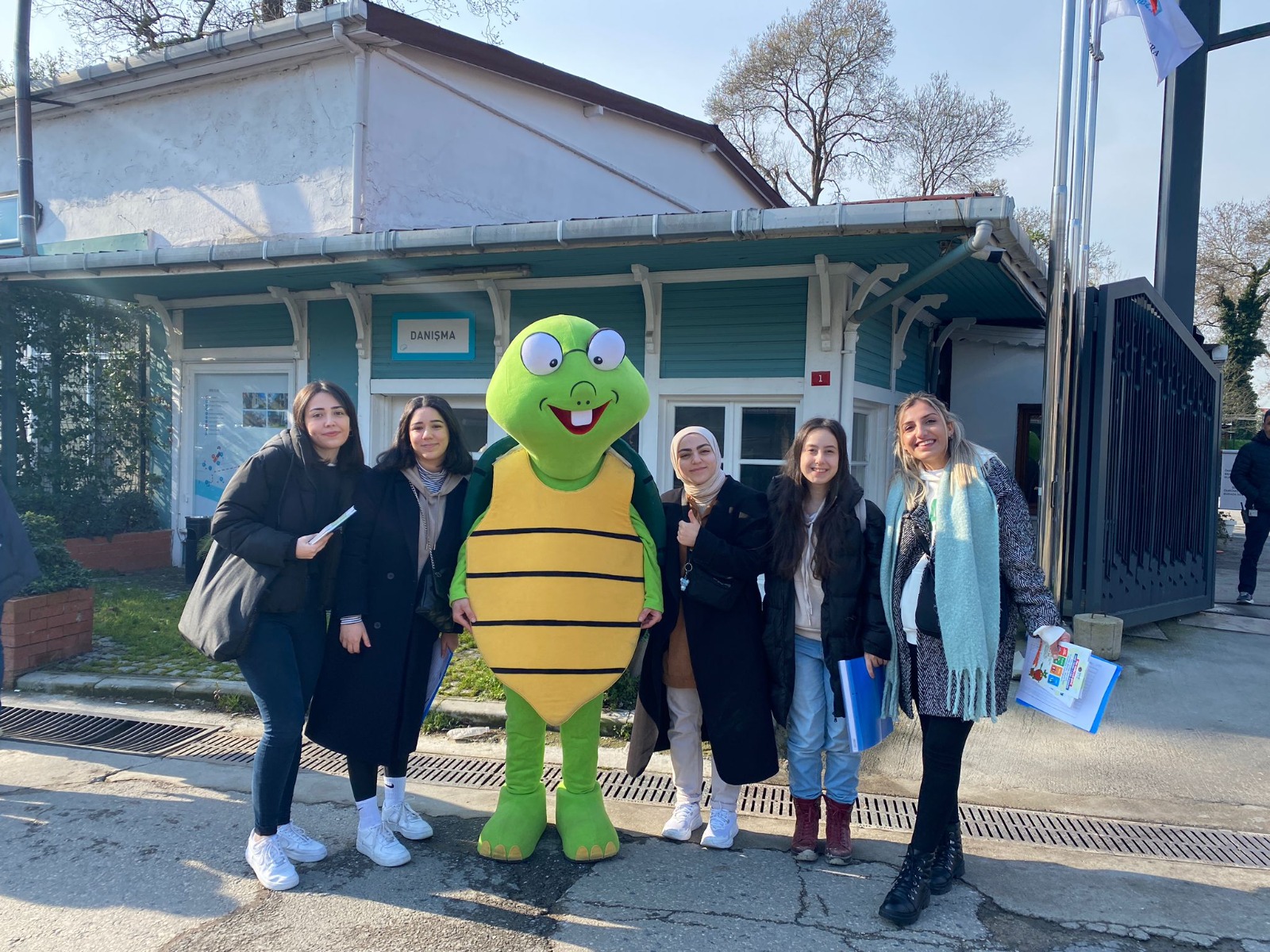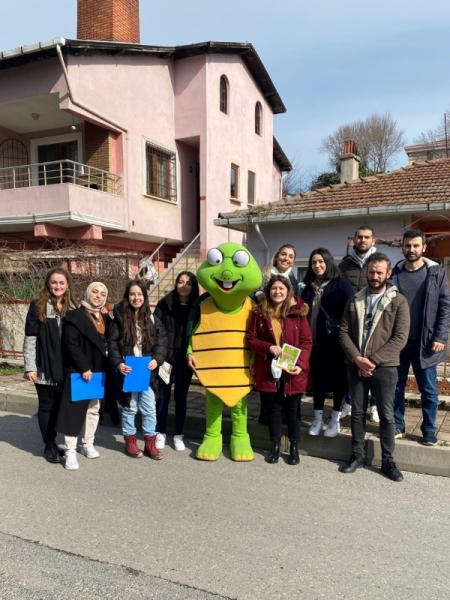 Öğrencilerin ziyaretine “Sıfır Atık”ın sevimli kaplumbağa maskotu ve belediyede görevli çevre mühendisleri de eşlik etti.