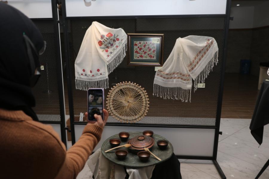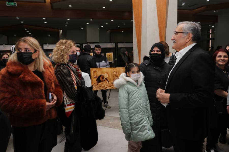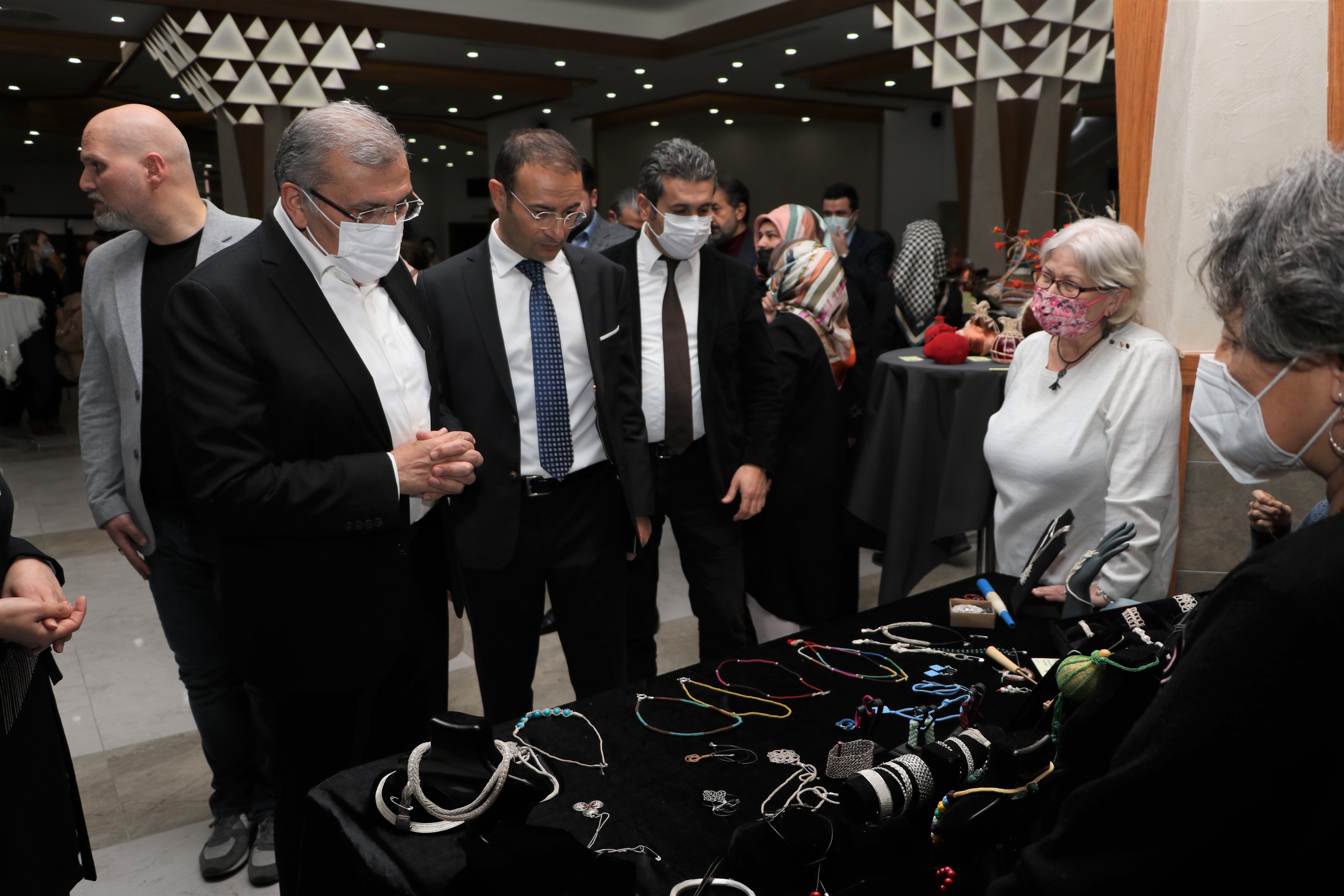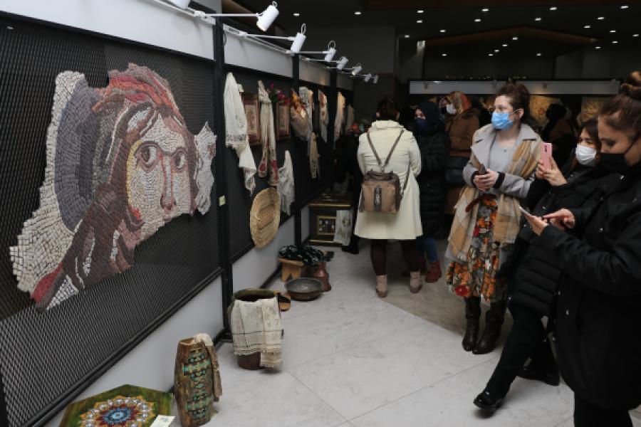 Anadolu’nun zengin kültür mirasından izler taşıyan yakma tablolar, tel kırma nakışlı örtüler, iğne oyalı başörtüleri, sepetler, deri çalışmaları, kıyafetler, gümüş kazaziye takılar, makrome duvar panoları ziyaretçiler tarafından ilgiyle gezildi.