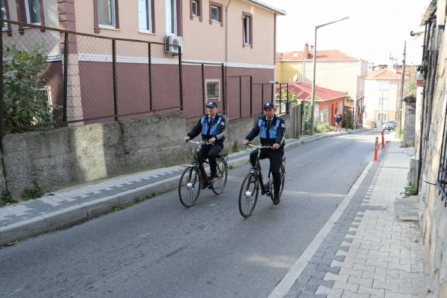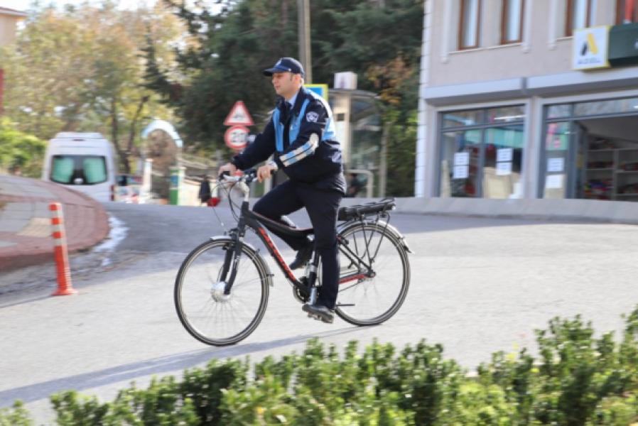 Bisikletli zabıta ekipleri haftanın 7 günü, 12:00-20:00 saatleri arasında ilçe sakinlerinin huzuru için pedal çeviriyor.