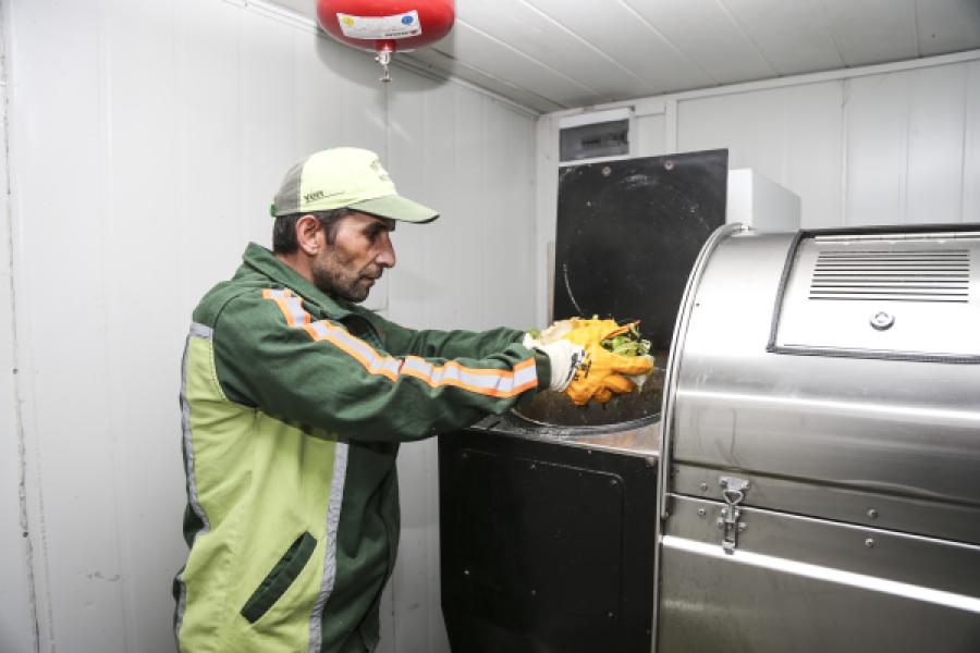 Pazar yerlerinde ve kurum yemekhanesinden düzenli olarak toplanan, ardından büyük kompost makinelerinde işlenerek, toprak için besleyici bir ürün olan kompost yapılan organik atıklar, şehrin doğal tarım merkezlerinden Yücel Çelikbilek Meyve Bahçesi’nde toprakla buluşuyor.