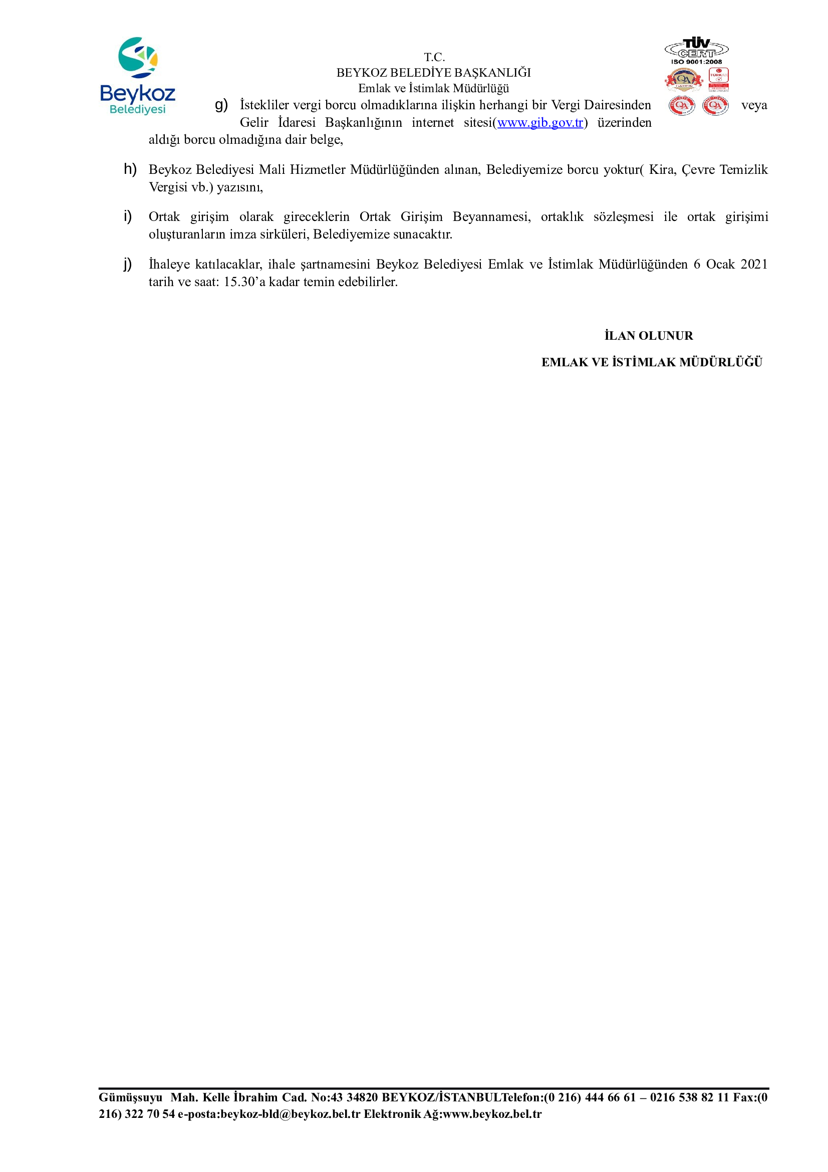 ÇUBUKLU MAHALLESİ 811 ADA 4 PARSELDE BAĞIMSIZ BÖLÜMLERİ BULUNAN İŞ YERİNİN KİRALANMASI İŞİ