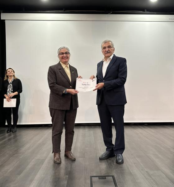 Konuşmaların ardından projede kapsamında eğitim veren akademisyenlere, eğitim seminerlerine ev sahipliği yapan okulların öğretmenlerine teşekkür belgeleri verildi.