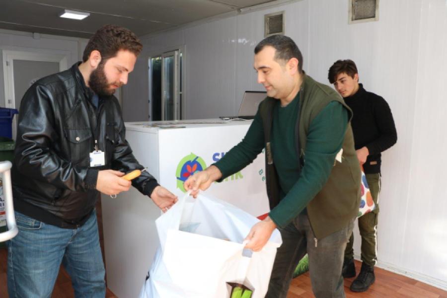 Ortaçeşme Meydanı’na kurulan atık getirme merkezine kağıt, karton, plastik, metal ve cam atıklarını getiren vatandaşlar her 5 kg için Halk Ekmek’ten 1 ekmek alıyor.
