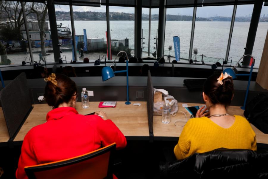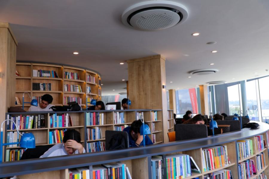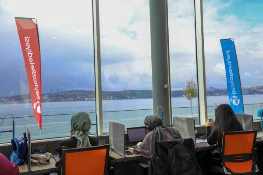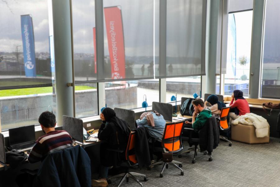 Boğaz manzarasına karşı, gençlerin dinamizmini yansıtan modern alanlara sahip kütüphanede aynı anda 120 kişi ders çalışabiliyor.