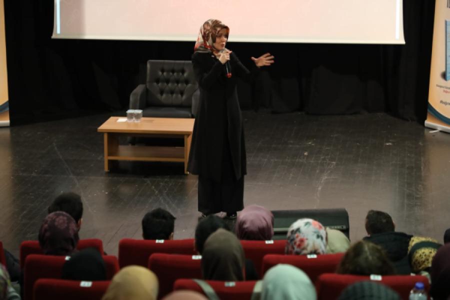 Aile Danışmanı ve Yazar Hatice Kübra Tongar “Çocuklarımızla İtişmeyelim İletişelim” başlıklı seminerde aile içi iletişimin püf noktalarını anlattı.