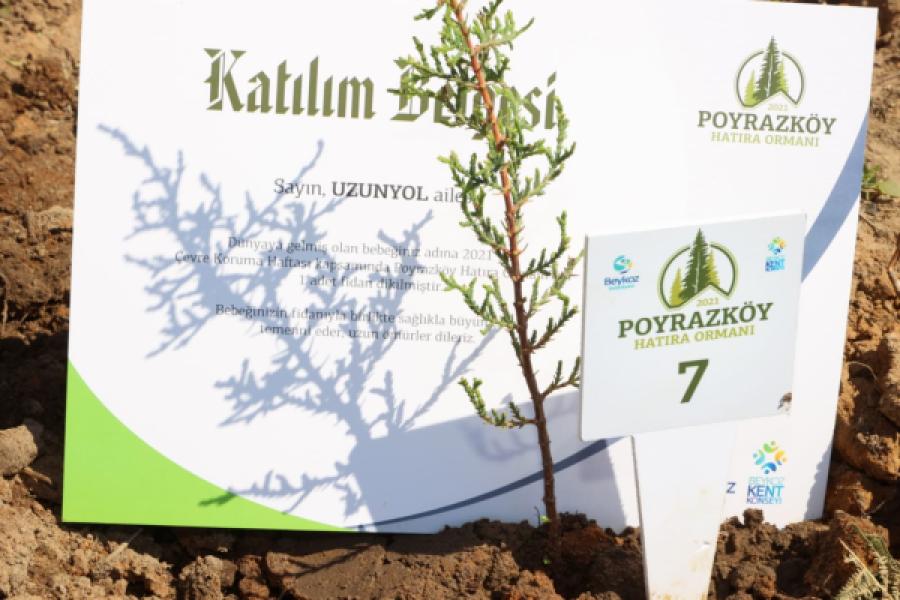Poyrazköy’deki ormanın açılışına katılan Beykoz Belediye Başkanı Murat Aydın ve Beykoz Kent Konseyi Başkanı Sadullah Kabahasanoğlu ilçenin geleceğine armağan olan proje kapsamında yeni doğan bebekler adına fidan dikti.
