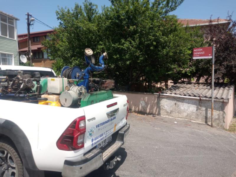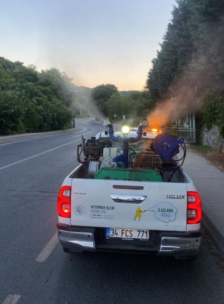Beykoz Belediyesi’nin huzurlu bir yaz için aylar öncesinden başlattığı sivrisinek ve larva ilaçlama çalışmaları 45 mahallede, 5 araç ve 15 personelin katılımıyla gece ve gündüz kesintisiz bir programla sürüyor.