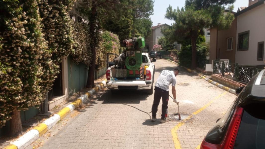 Mahalle muhtarlarının da eşlik ettiği çalışmayla tüm sokakların ilaçlanması hedefleniyor. İlaçlama çalışmalarında Dünya Sağlık Örgütü (WHO)’dan onaylı ürünler kullanılıyor.