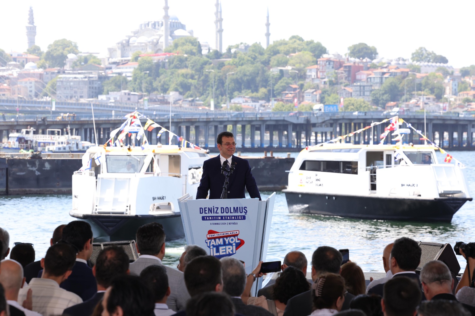 Vapur düdükleri eşliğinde araçların denizle buluşmasına tanıklık eden İBB Başkanı Ekrem İmamoğlu, “Bütün toplu taşıma çalışmalarını sürdürüyor olacağız. Bizi metrolarda da göreceksiniz, yeni nesil metrobüslerde de göreceksiniz. Bizi deniz ulaşımında yaptığımız yatırımlarda da göreceksiniz. Bisiklet konusunda attığımız adımları da göreceksiniz. Birçok konuda İstanbul'un yenilikçi, vizyoner, çevreci en düşük emisyona sahip, sürdürülebilir araç takviyeleriyle İstanbul'un toplu taşımasında çok başka bir döneme yürüyüşümüzü takip edeceksiniz” ifadelerini kullandı.