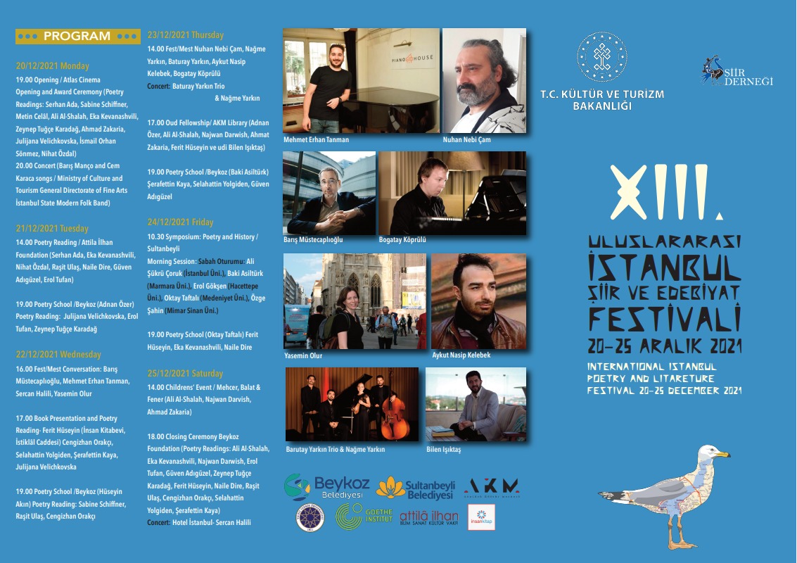 Kültür ve Turizm Bakanlığı ve Şiir Derneği işbirliğiyle gerçekleşen “XIII. Uluslararası İstanbul Şiir ve Edebiyat Festivali”ne bu yıl 13 yerli, 7 yabancı olmak üzere 20 şair, 4 genç yazar, 6 genç müzisyen, besteci ve 2 orkestra katıldı.
