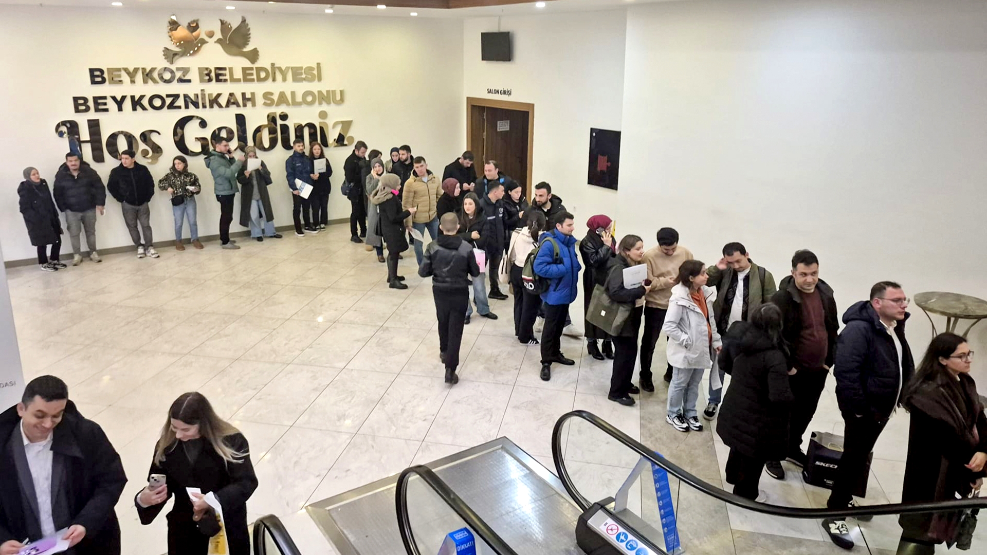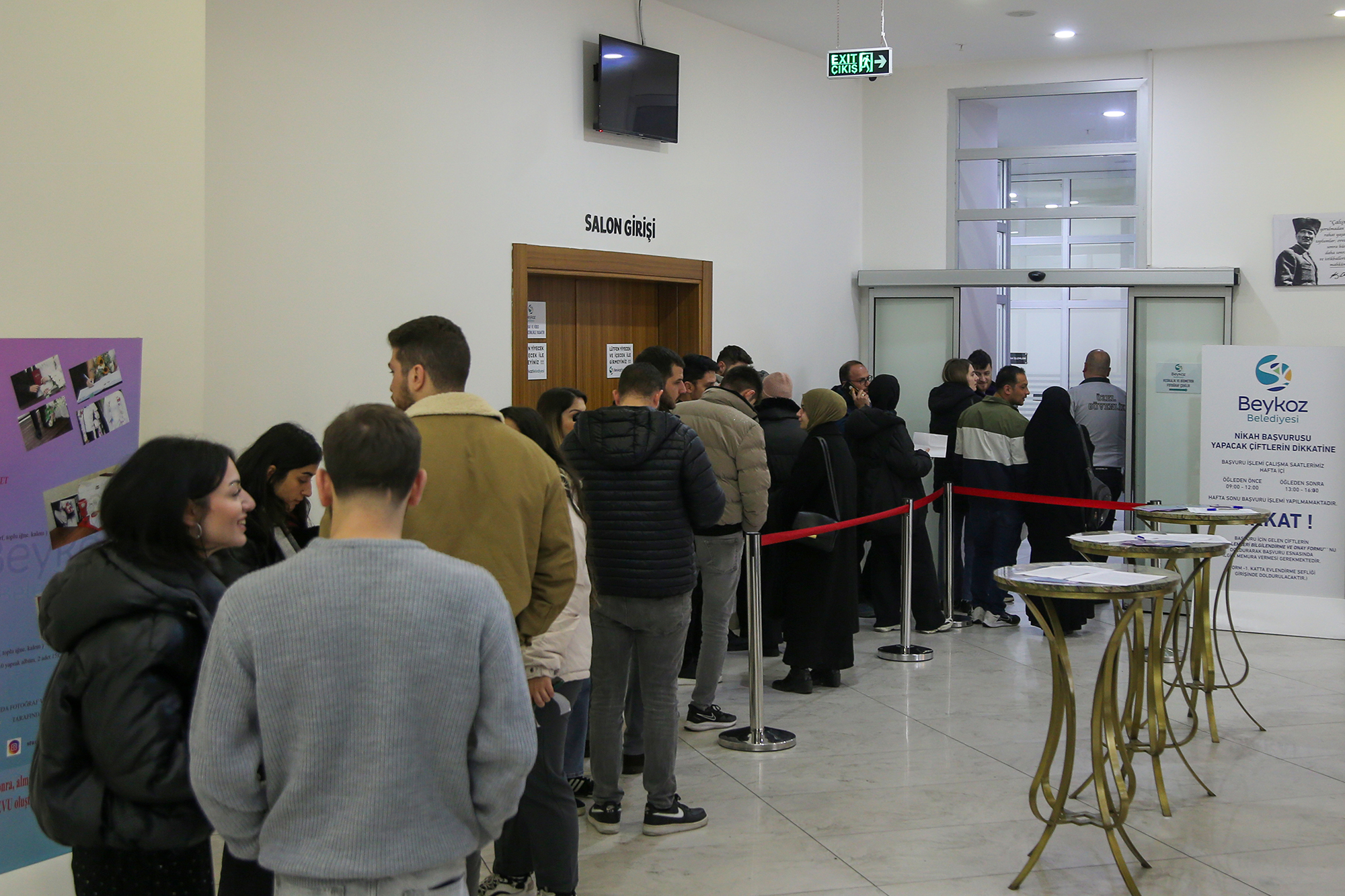 Beykoz Belediyesi Kavacık Nikâh Salonu, bugün sabahın erken saatlerinden itibaren alışılagelmişin dışında bir yoğunluğa sahne oldu. Nikâh işlemlerini başlatmak ve o "sihirli tarihte" evlenmek isteyen yüzlerce vatandaş, başvuru alanında uzun kuyruklar oluşturdu. Sıradan bir işlem gününden ziyade adeta bir merasim havasının estiği salonda, çiftlerin heyecanı gözlerinden okunuyordu. Kimi çiftler ellerinde evrak dosyalarıyla sabırsızlıkla sıranın kendilerine gelmesini beklerken, kimileri ise bu anı ölümsüzleştirmek için kuyrukta özçekim yaptı.