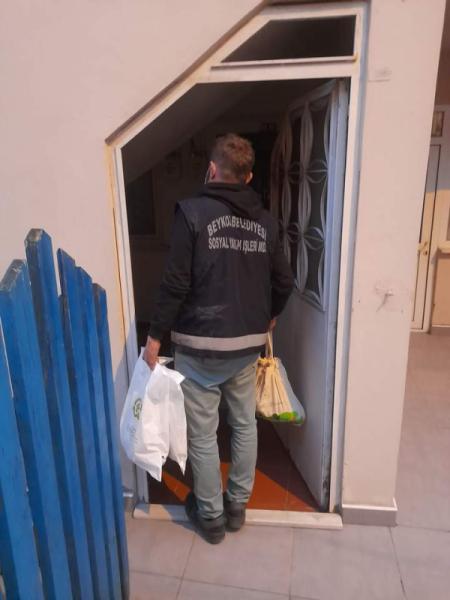 Hijyen koşullarına uygun olarak hazırlanıp paketlenen yemekler ekipler tarafından belediyede kaydı bulunan evlere kapı kapı teslim ediliyor.