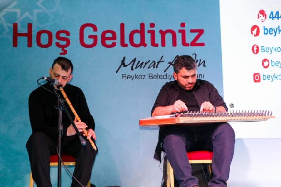 Akşam ezanından önce iftar sevinciyle masalarda yerini alan ilçe sakinlerine Kur’an-ı Kerim tilaveti, ney ve müzik dinletisi sunuluyor.