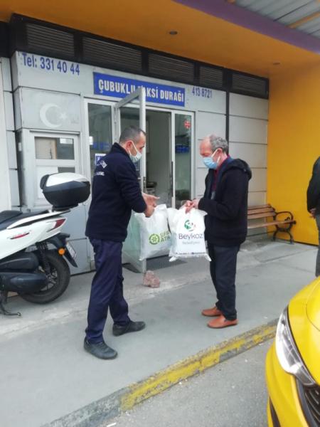 Salgın sürecinde tüm ülke genelinde olduğu gibi Beykoz’da da fedakârca çalışan taksici esnafı ve emniyet personeline iftar yemeği ikramı başladı.