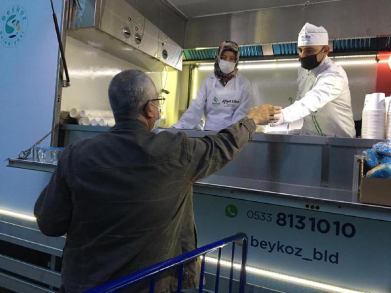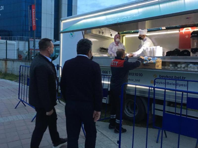 Beykoz Devlet Hastanesi bahçesinde sağlık çalışanları ve hasta yakınlarına hizmet veren mobil büfe ise iftardan sahura sıcak çorba ikramı yapacak.