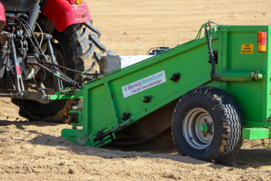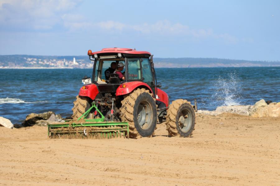 Merkez Plajı’ndan başlatılan çalışmayla tüm kumsal özel bir temizlik aracıyla baştan ayağa taranıyor. Ekipler araçla kumları havalandırıyor, derindeki çöpler dahi çıkarılıyor.