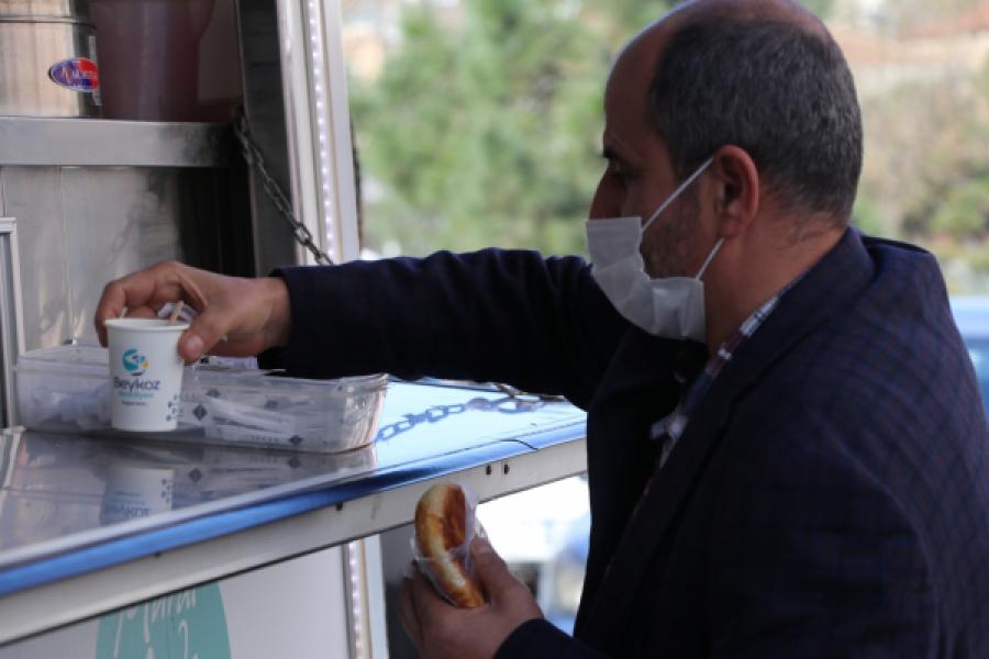 Salgınla mücadelede en ön safta yer alan sağlık çalışanlarına moral vermek amacıyla hazırlanan yöresel yemekler hastane bahçesinde açılan Beykoz Belediyesi’ne ait mobil büfede sağlık personeli ve hasta yakınlarına ikram ediliyor.