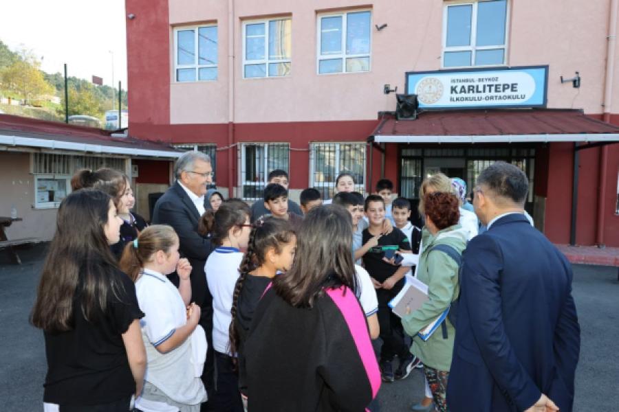 Karlıtepe İlkokulu’nda düzenlenen dağıtıma katılan Beykoz Belediye Başkanı Murat Aydın öğrencilere diş fırçaları ve diş macunlarını hediye etti.