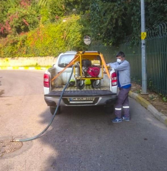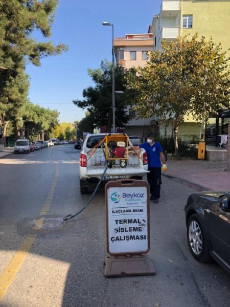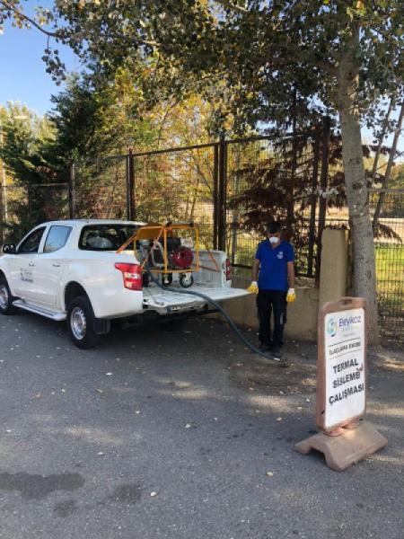 Beykoz Belediyesi bünyesinde görevli 12 kişilik 6 ayrı ekip, her hafta aynı gün aynı mahallede olacak şekilde kanalları araç üzeri özel imal edilen termal sisleme makinasıyla ilaçlıyor.