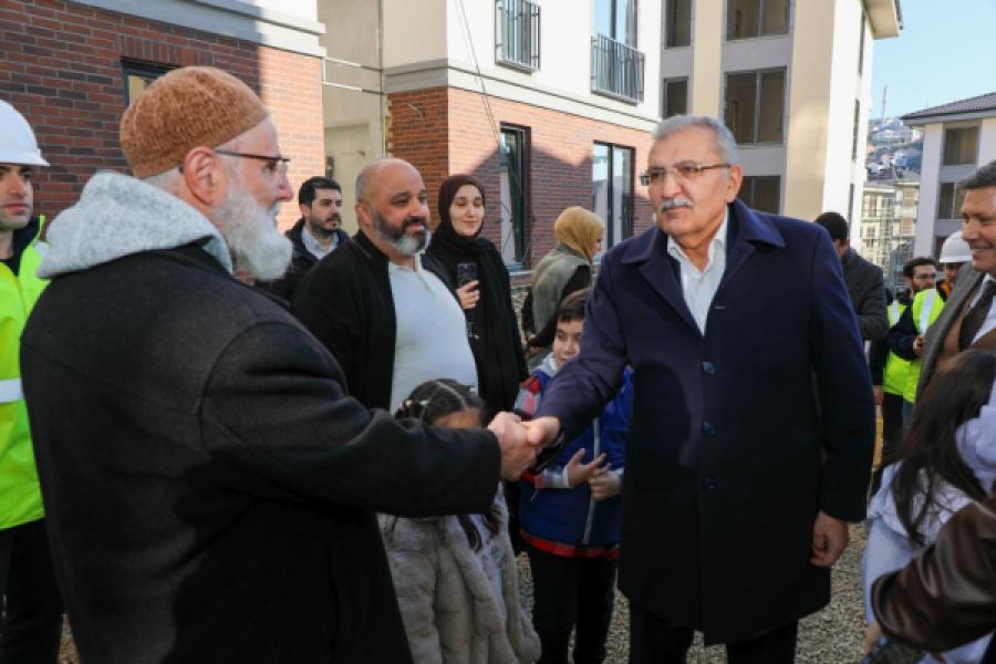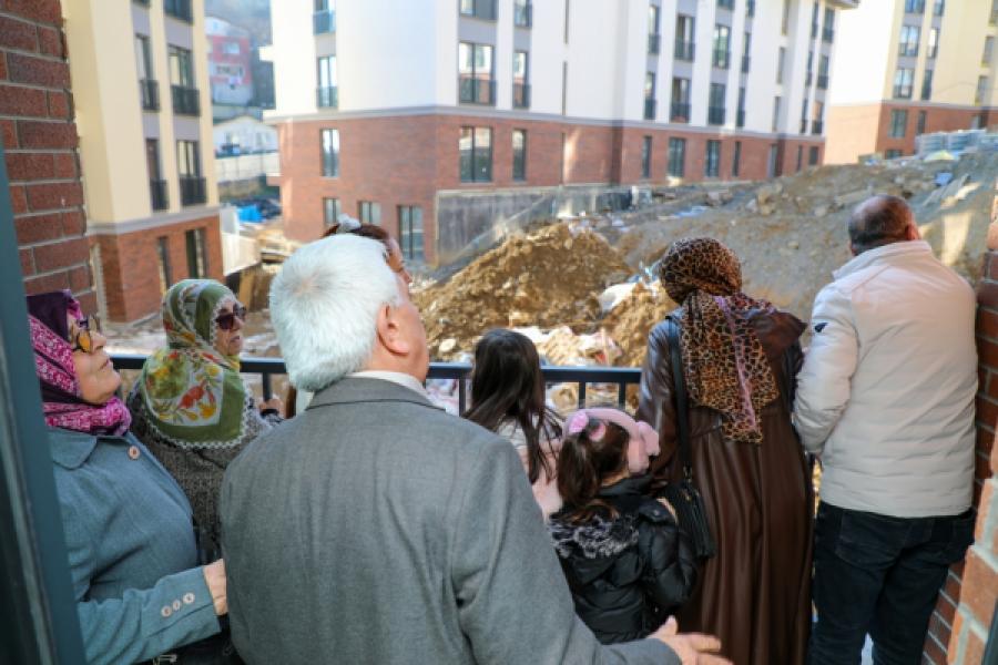 Beykoz Belediye Başkanı Murat Aydın, daireleri görmeye gelen hak sahiplerine eşlik ederek mutluluk ve heyecanlarını paylaştı.