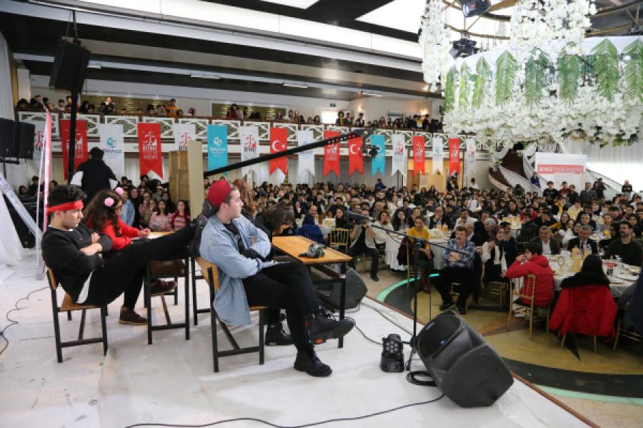 Galada kendi yazdıkları skeçler ve meddah gösterisi sergileyen gençler performanslarıyla alkış aldı.