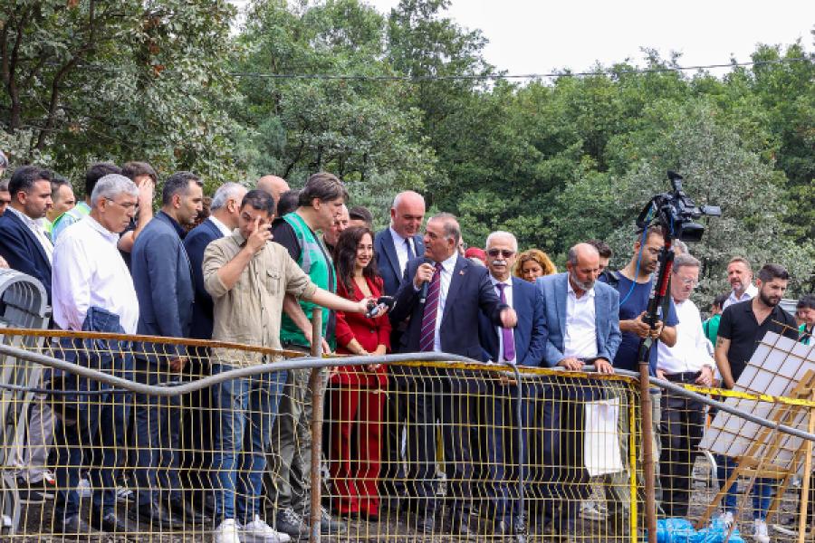 Törende konuşan İBB Başkan Vekili Nuri Aslan, İstanbul’un çevresini korumak adına tüm ilçe belediyeleriyle iş birliği içinde olduklarını belirterek: “İstanbul'umuzun çevresini de koruyabilmek için tüm gücümüzle İSKİ'mizle, İBB'mizle, ilçe belediye başkanlarımızla mücadele ediyoruz. Çünkü kent altyapımız, artan nüfus karşısında yetersiz kalmış ve ömrünü tamamlamış durumdaydı. Bazı ilçelerimizde 30 yıldır, 35 yıldır, 25 yıldır hiç altyapı hizmeti götürülmemişti. Bu nüfus artışına rağmen, mevcut eski altyapılarla hareket ediliyordu. Şehrimizin altyapıları, çağın gerekliliklerini karşılamıyordu. Ama 2019 yılında İstanbul'a çağın adamı geldi, çağın gerekliliklerini anlayan bilen ve ona göre hizmet götüren bir belediye başkanı seçildi. İşte onun adı Ekrem İmamoğlu'ydu. Bugün Silivri'de, zindanlarda Türkiye için ve İstanbul için çalışıyor. Dün aramızdaydı, yarın da aramızda olacak. Ekrem Başkanımız, İstanbul'un altyapı sorununun sorununu en önemli gündem maddelerinden biri olarak kabul etti. Alanında bir dünya markası olan İSKİ ile en güçlü şekilde altyapı yatırımlarına başlanması için talimat verdi.” şeklinde konuştu.