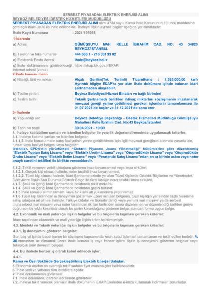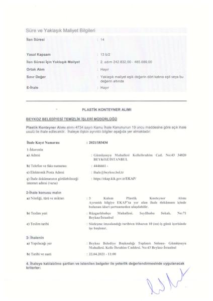 Başkanlığımız birimlerine hizmet vermek üzere Beytaş A.Ş. üzerinden 26 Nisan 2021- 15 Ekim 2021 tarihleri arasında çalışacak “Temizlik, Taşıma, İlaç...