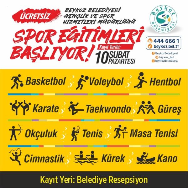 Beykoz Belediyesi sporla iç içe ve sağlıklı nesiller yetiştirmek amacıyla 11 branşta spor okulları açıyor.