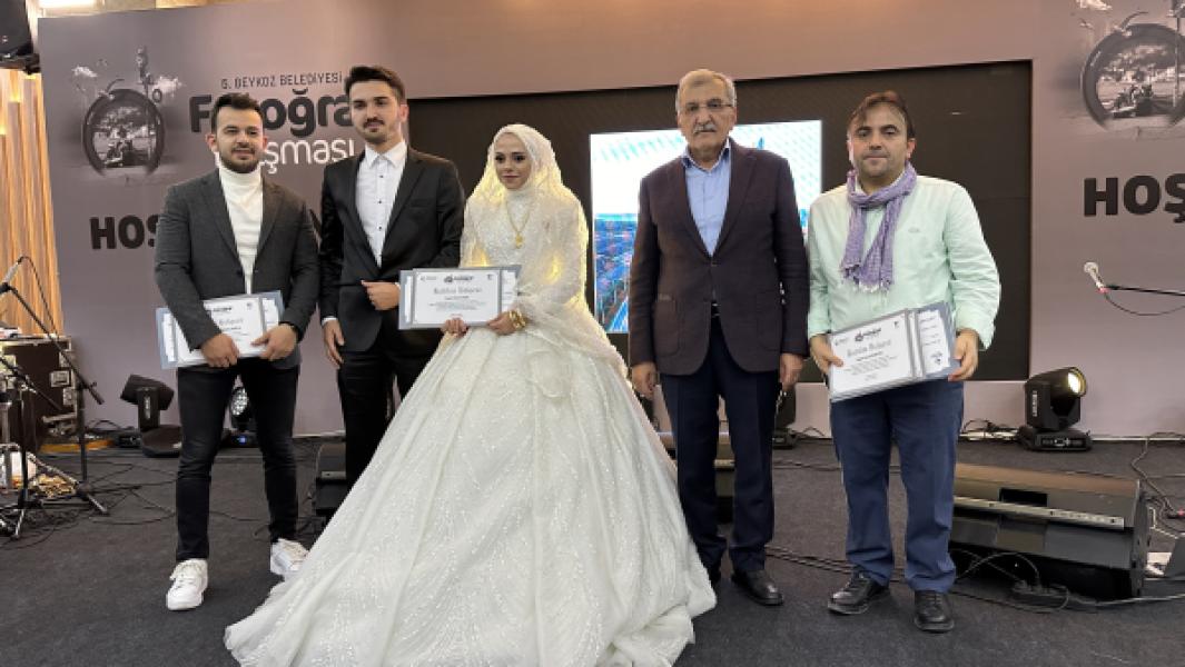Beykoz’da düzenlenen fotoğraf yarışması ödül törenine, Gamze- Ümit Çiçek çifti evlendikleri gün düğünden çıkıp geldi. Dron kategorisinde ödül alan dam...